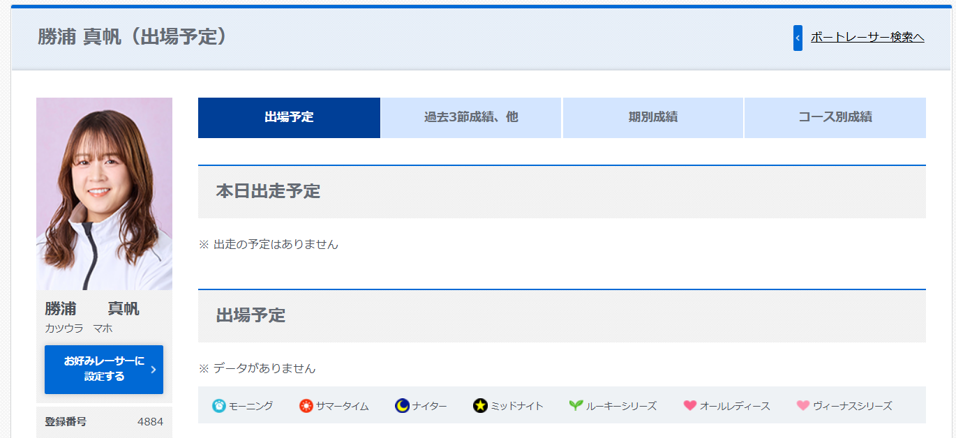 勝浦真帆のコース別成績や近年の期別成績をチェック!