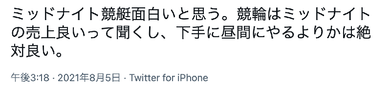 競艇(ボートレース)がミッドナイトを開催することについて、早速Twitterでは競艇ファンが沸いています。ミッドナイトボートレースについては賛否両論のようです。