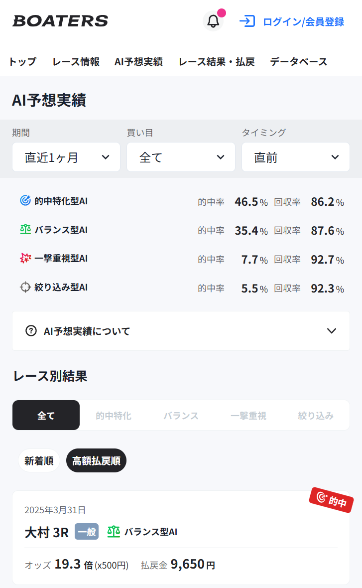 「ボーターズAI」は人気競艇YouTuberボーターズが監修したAI予想サイトです!