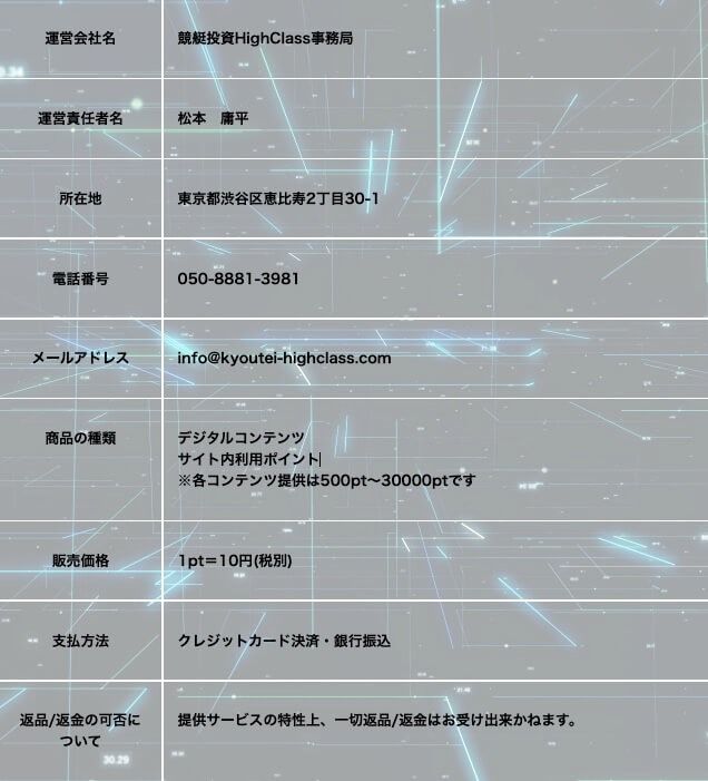 「競艇投資ハイクラス」は特商法の記載に「1PT=10円」と記載されていました。
