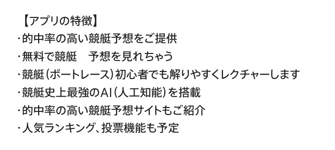 - 競艇史上最強のAI(人工知能)を搭載 ←詳細は何も記載されていない