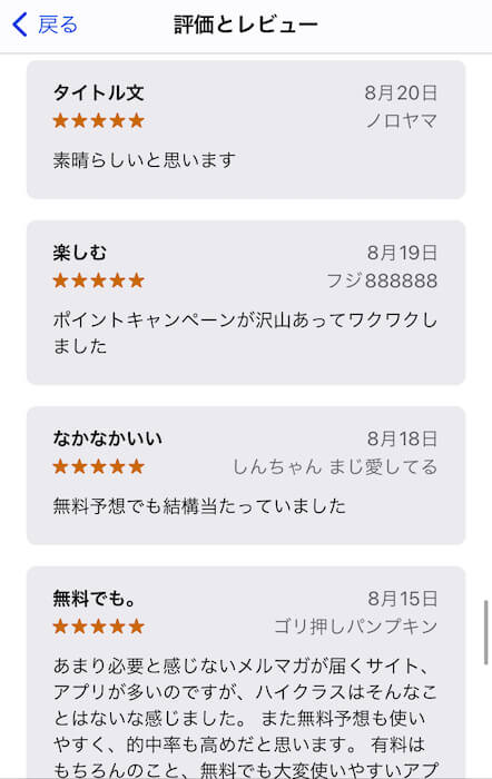 ここからは、iPhoneのAppStoreから、高評価の口コミと低評価の口コミを見ていきます!