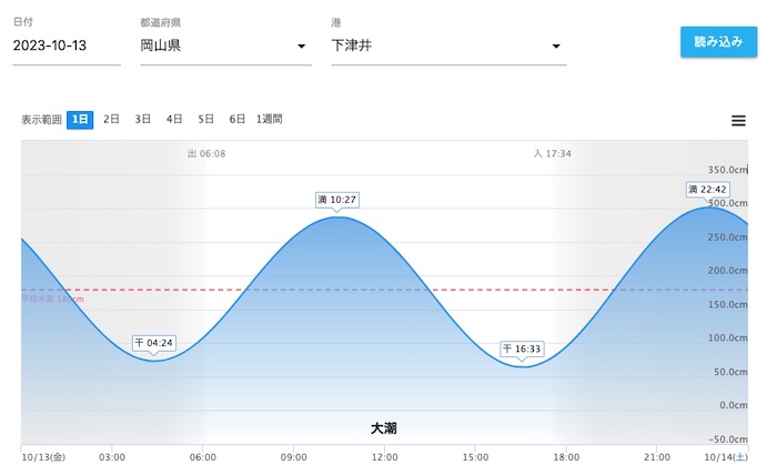 しかし、1週間前の10月6日を確認すると、「02:10」と「16:03」に満潮が来ています。