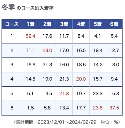 - 冬は3・4コースからのまくりに注意!
