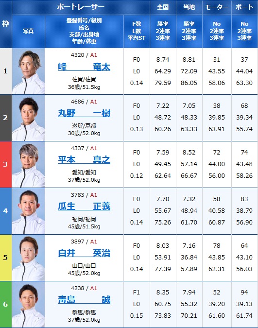 走・攻・守を備えた万能型で平均STは0.15と1着を狙え、道中の追い上げもできる選手です。