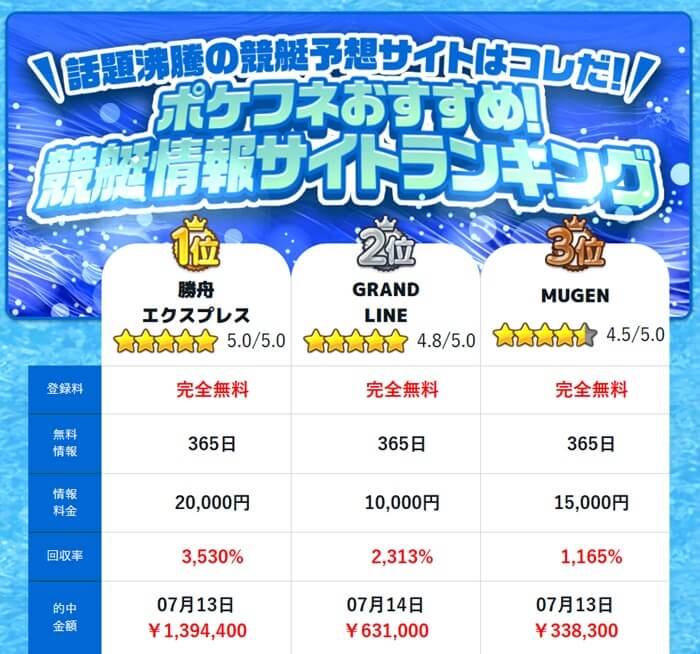 大々的に紹介しているのは競艇予想サイト!ただしランキングは全く当てにならない!