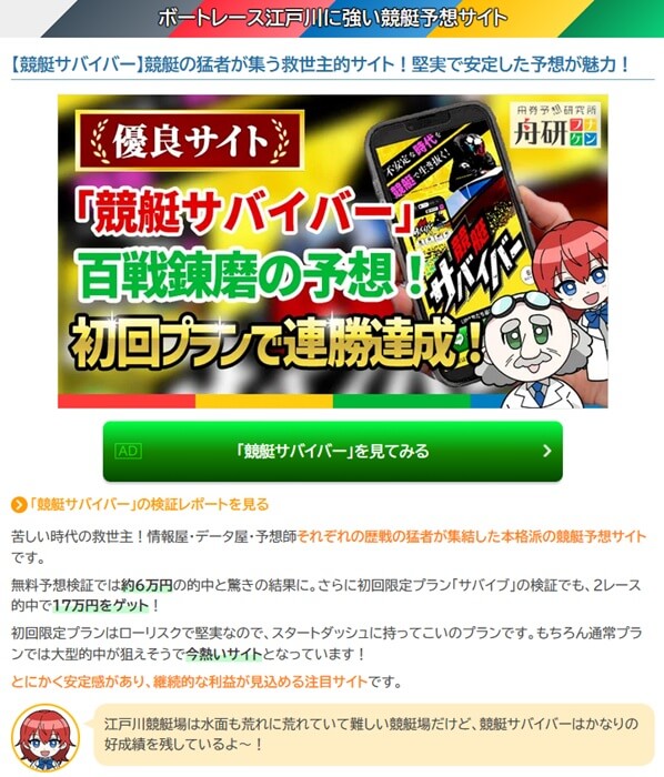 舟研ではボートレース場毎に得意な競艇予想サイトを紹介していますので、是非とも参考にしてみてください。