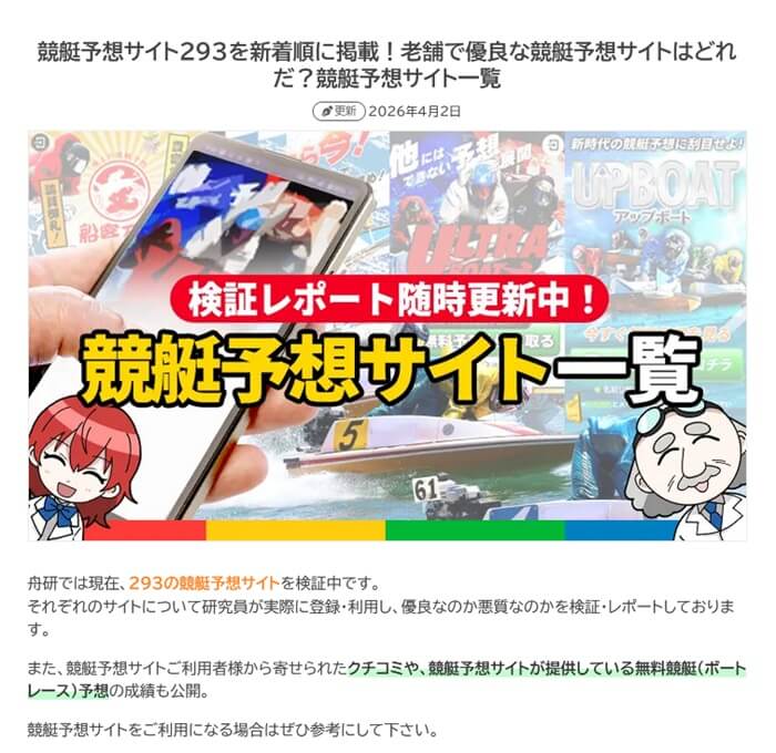 記事を読んでくれてありがとなのです!最後に舟研でオススメしている優良予想サイトを紹介するね♪