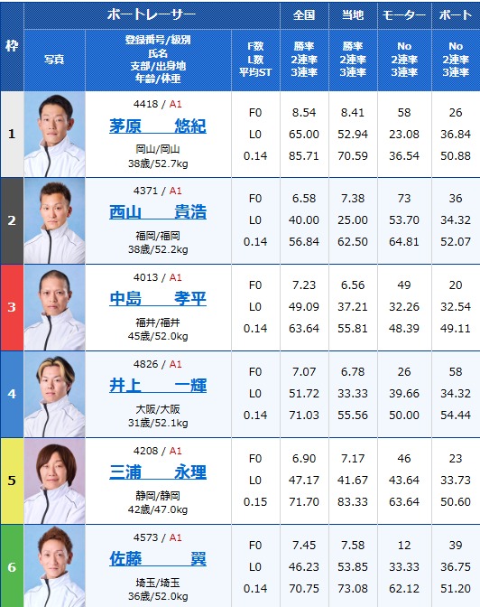 西山貴浩は今回かなり上位のモーターを引いているので、このままのペースでいけば優勝戦出場も十分ありそうですね。