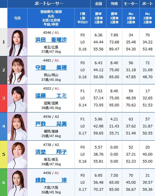 - 1号艇:浜田亜理沙(A1級・埼玉)