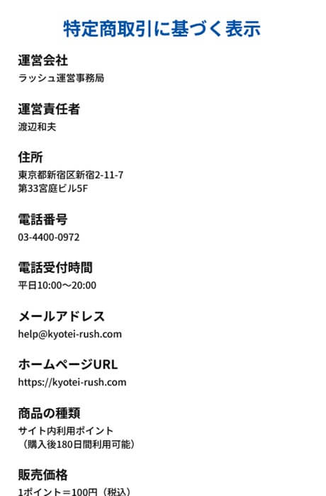 運営元の電話番号・住所・IPアドレス・利用規約などに怪しい点はありません。