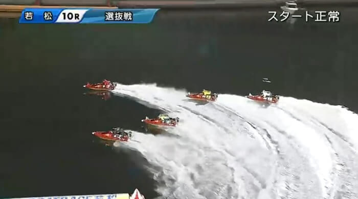 レースが始まると3・6号艇のB2級2人がスタートで遅れ、1周目1Mの時点でレースは1・2・4・5号艇の4艇に絞られました。