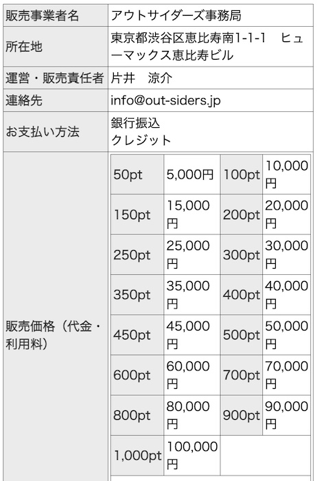 - 【販売事業者名】アウトサイダーズ事務局
