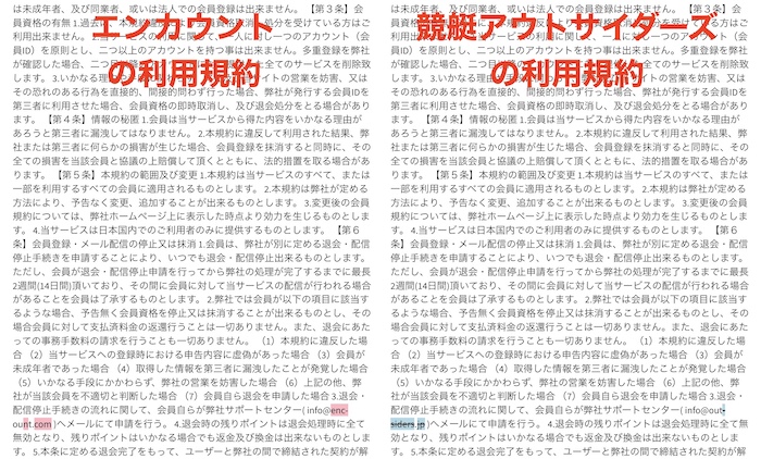 さらに、両者の利用規約を比較してみると、内容はほぼ同じ!
