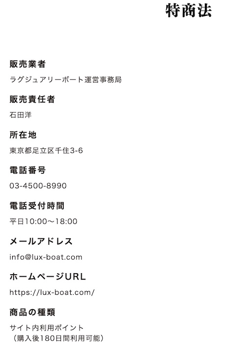 - 【販売業者】ラグジュアリーボート運営事務局