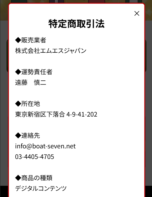 - メールアドレス:info@boat-seven.net