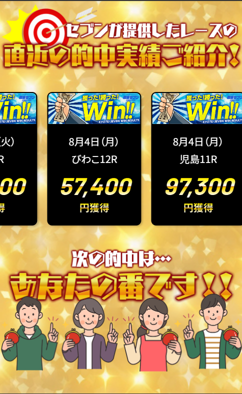 サイト下部には、たくさんの的中実績が掲載されています!