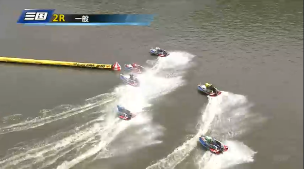 1周目の第1ターンマーク手前では今垣光太郎が逃げの態勢に入りましたが、ここで山口剛が鮮やかなまくり差しを決めて先頭に立ちます。