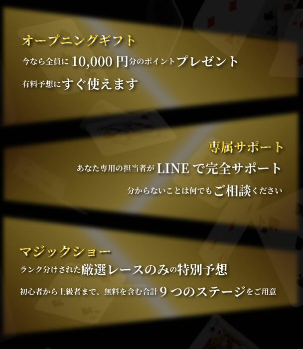 無料予想にも実際に参加してみましたが、手品師が予想しているだけあって予想の質は最悪で、レース選定から買い目まで何もかもが悪く不的中という結果でした。