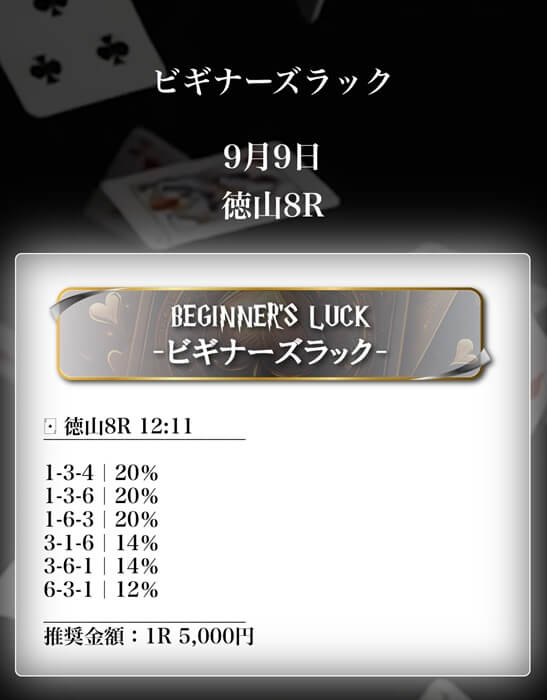 参加したのは、2025年9月9日・徳山8Rの買い目が届きました。