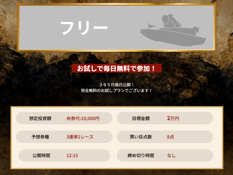 競艇トレジャーハンターは、毎日1レース分の無料予想を提供しています。