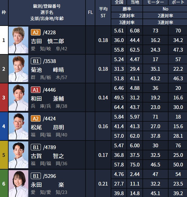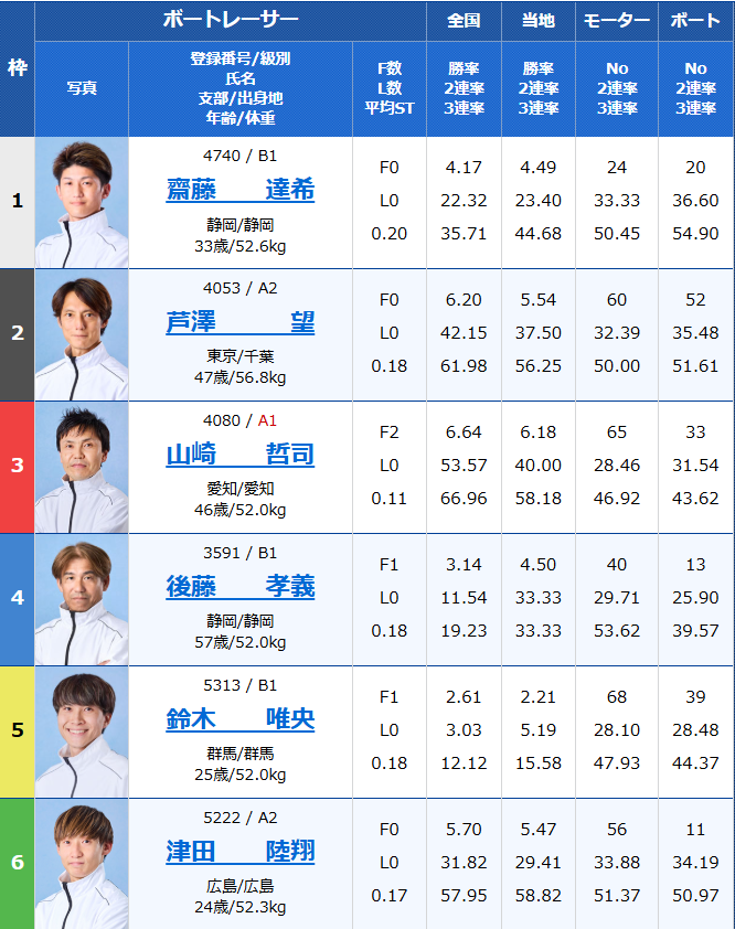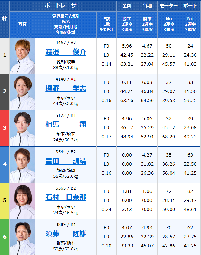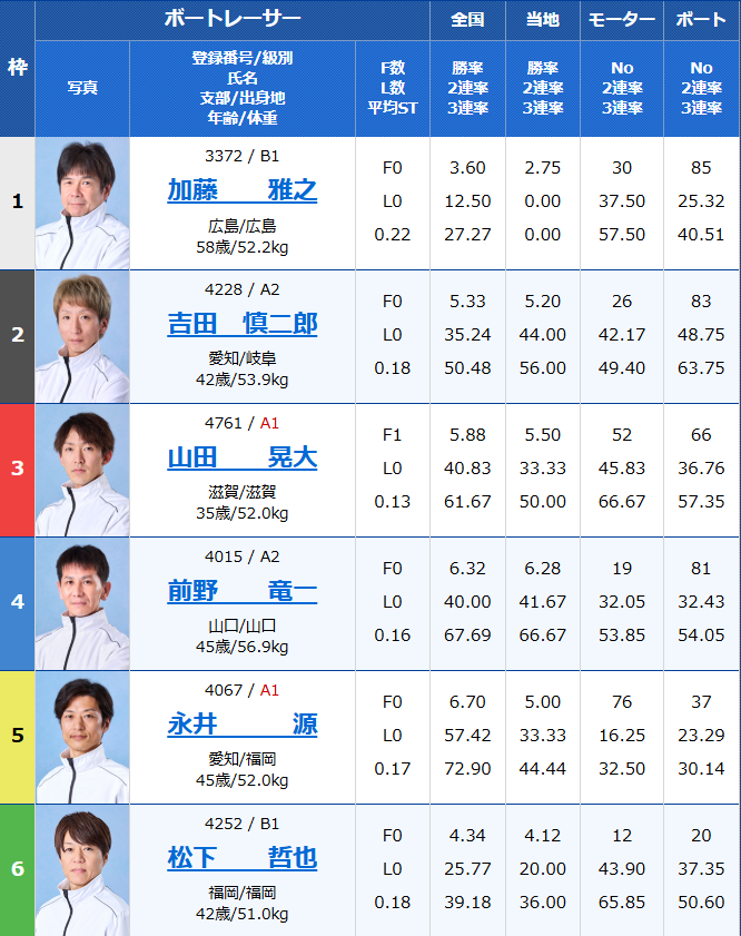 単に出走表が見られるだけではなく、選手ごとの詳細データまで確認できるようになっており、外部サイトをわざわざ開かなくても予想に必要な情報がすべて揃う仕様になっています。