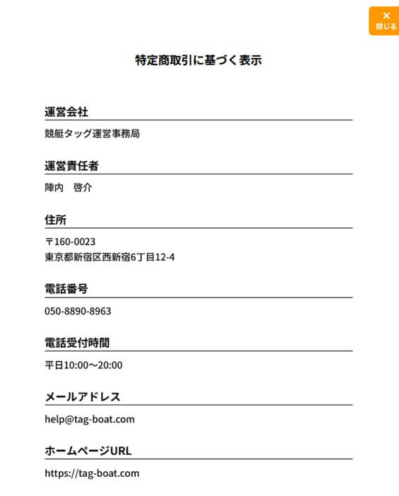 競艇タッグの特商法には電話番号も記載!安心して登録ができる!