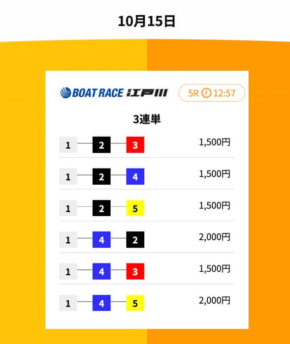 参加したのは2025年10月15日で、江戸川5Rの買い目が届きました。