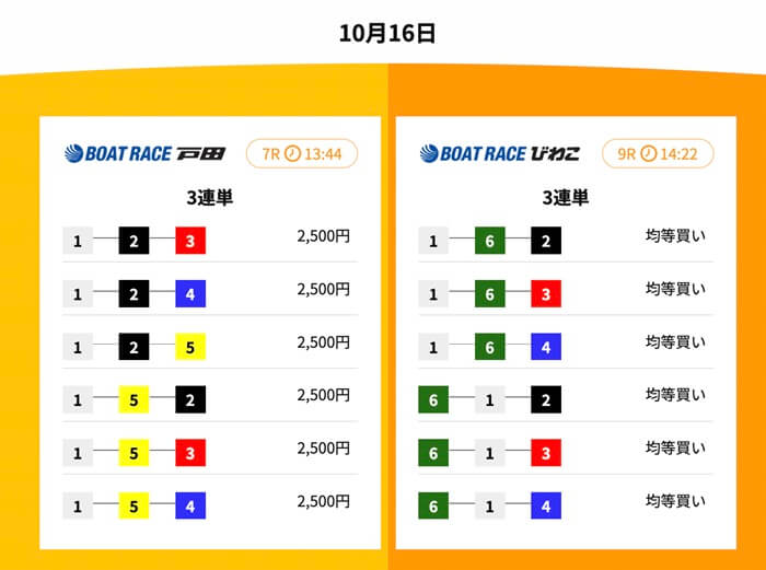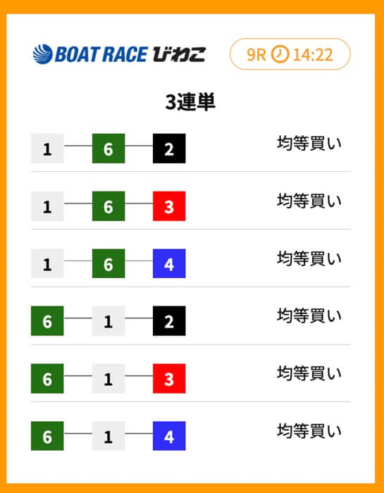 | シングル | 1レース | 3~10点 | 15,000円 | 12万円~ | 260PT | 特選タッグ |