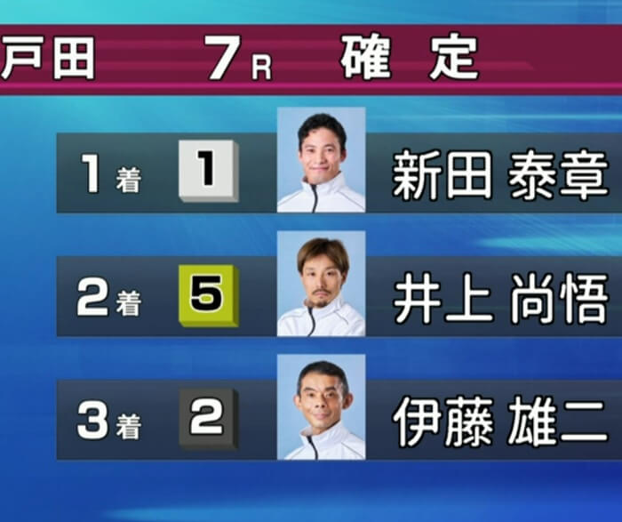 - 6号艇:佐藤大佑(A2級・東京)