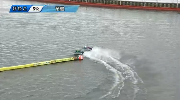 紐になっていた2号艇の山田はターンの終わり際に、5号艇の古田と接触し、大幅に後退。これは「1-3-4」「1-4-3」に絞られましたね。