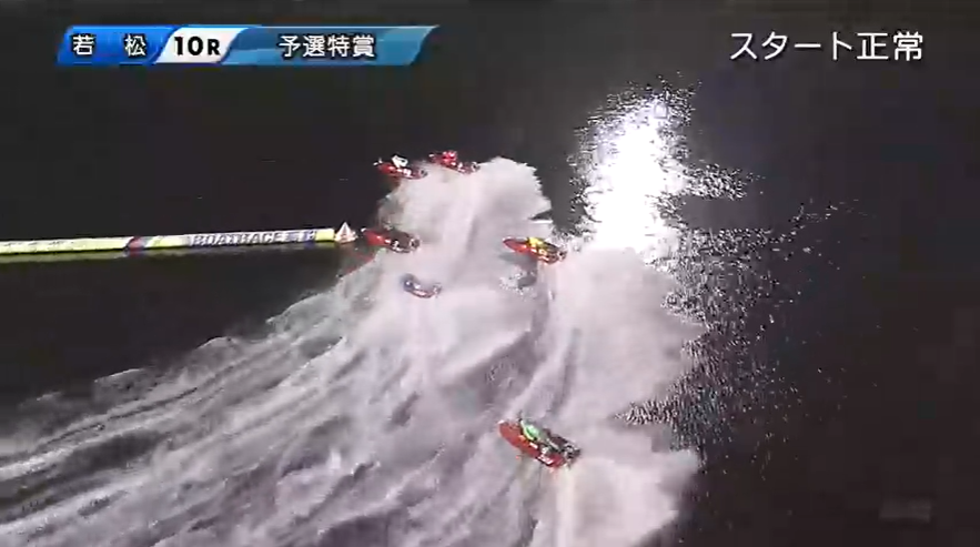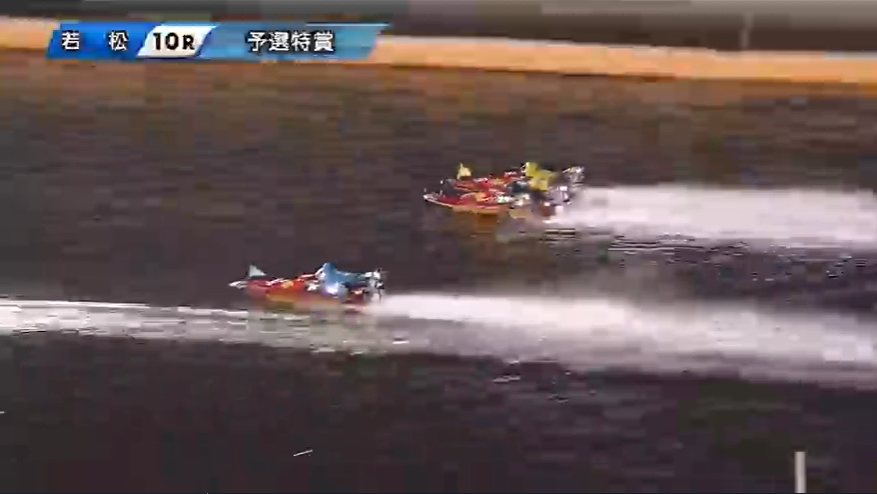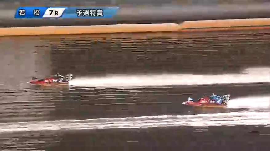 フライングや出遅れもなくレースは無事に開始・・・と思ったら1周目1Mで3号艇の妹尾が「まくり」、4号艇の坪井が「まくり差し」で仕掛ける!
