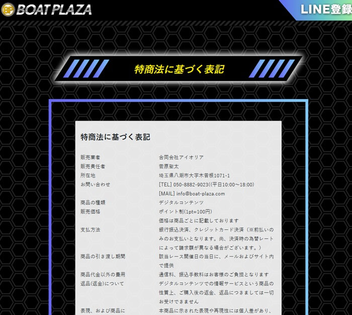 検証時には「ボートプラザ運営事務局」が運営していましたが、現在は「合同会社アイオリア」に移管されている・・・これは悪質サイトの匂いがしてきましたね。