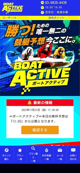 今回は2025年11月中旬に発見した、競艇予想サイト「ボートアクティブ」を検証していきます。
