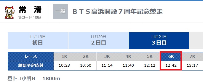 デイに参加したところ届いたのは常滑6Rと7Rなのですが、さっそく常滑6Rの締切時間を間違えるという凡ミスを行っています。