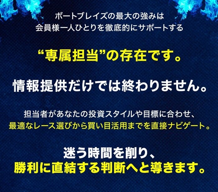 また、専属担当によるサポートも目玉として挙げていますが、ボートアクティブを運営していることを考えると満足のいくサポートが受けられるかは微妙ですね。