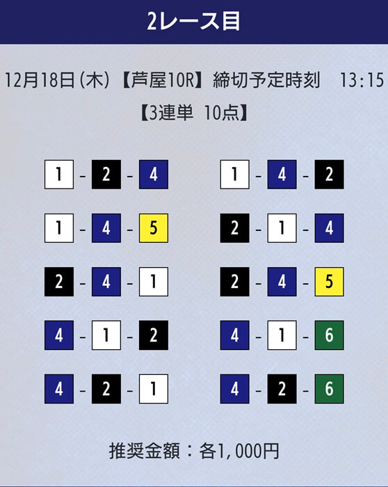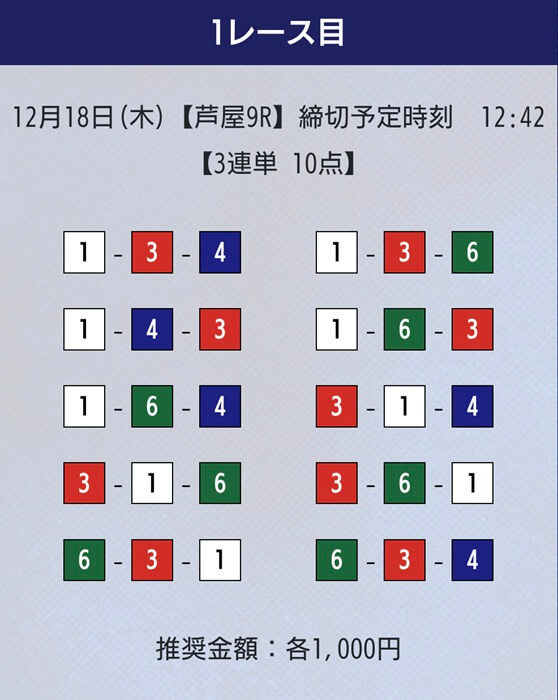 2025年12月18日の無料予想・芦屋10Rに参加