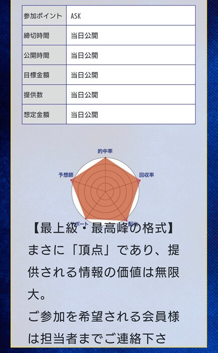 基本情報からして怪しさ抜群ですが、会員募集ページに書いてある予想の根拠も見ていきましょう。