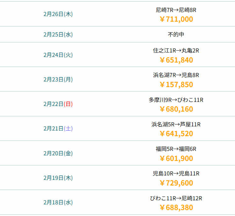- 当記事はあくまでも執筆者個人の経験に基づく検証で、当サイトはその正確性・再現性を保証は致しません。競艇予想サイトをご利用の際はご自身の判断でお願いいたします。