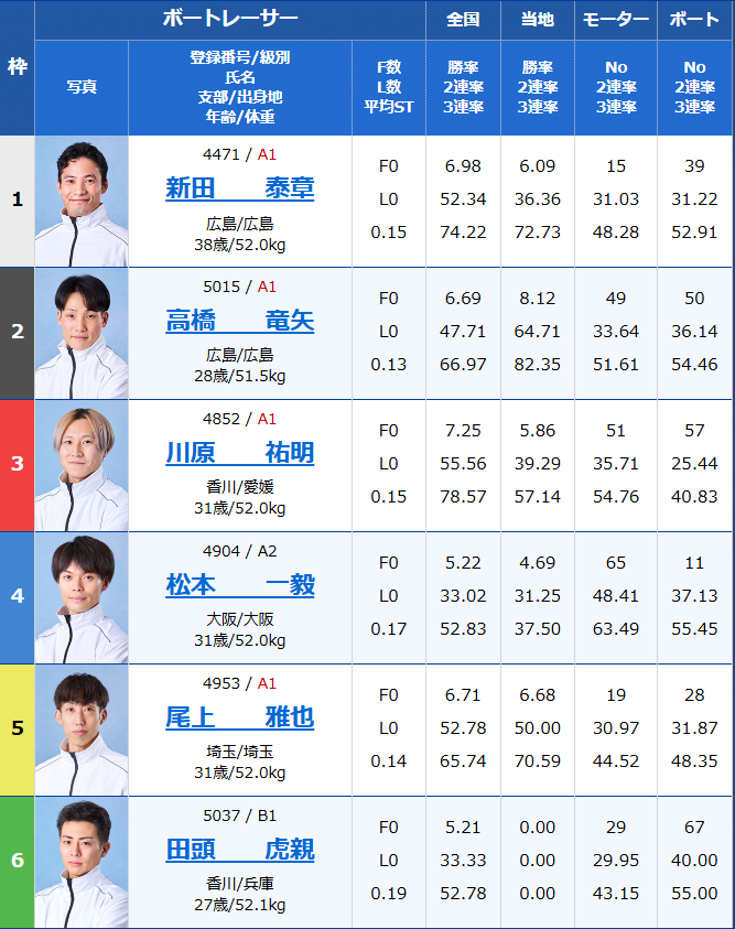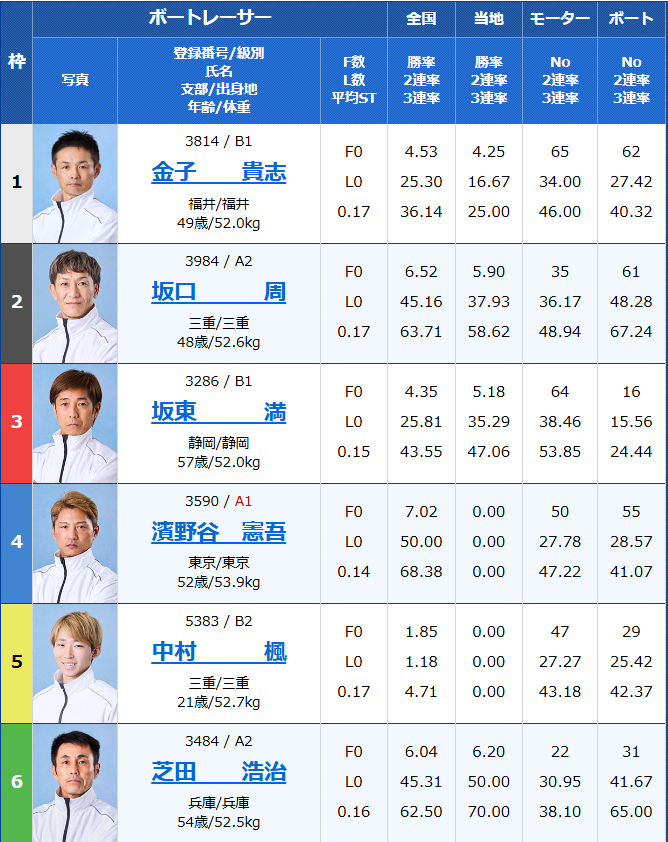 - 6号艇:山ノ内雅人(A2級・福岡)