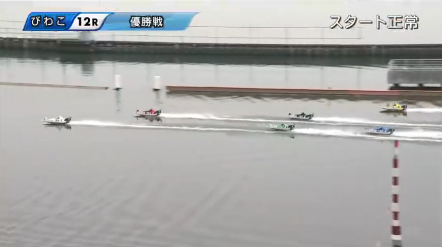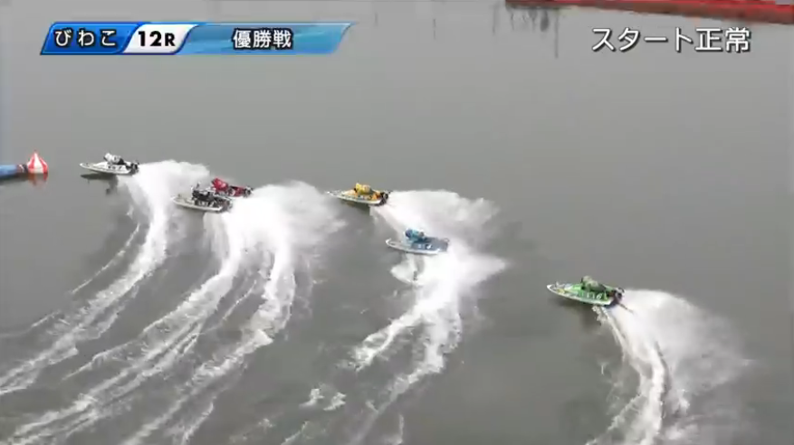 しかし3号艇に押された影響で2号艇の渡辺はスピードダウンし、「1-3」の並びはほぼ確実となり、3着争いを2・4・5号艇が行う理想的な展開に!