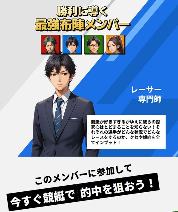 - 競艇予想の専門家集団による圧倒的な情報力と分析技術が強み