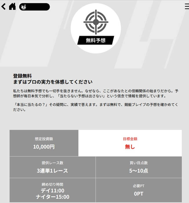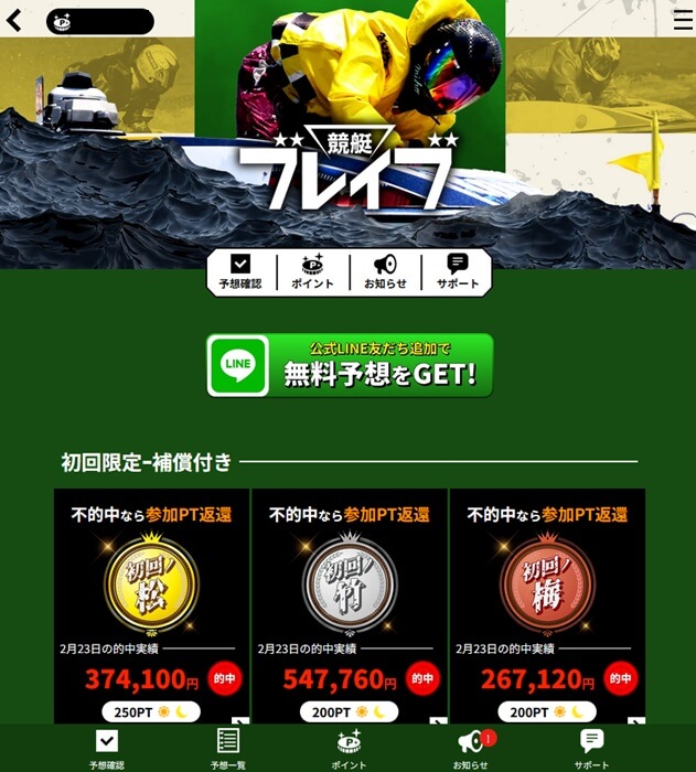 まずは無料予想、その次には初回限定プランを使うのが理想じゃな
