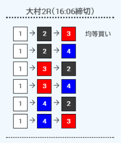 1レース目は、大村1R。 括弧内は、オッズになる。