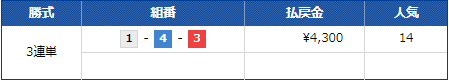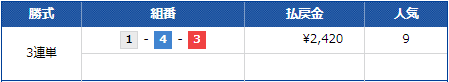 結果は1-4-2で的中!オッズは24.4倍じゃな。
