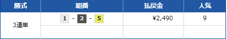 オッズは25.1倍で払戻金は約24万円じゃな! -